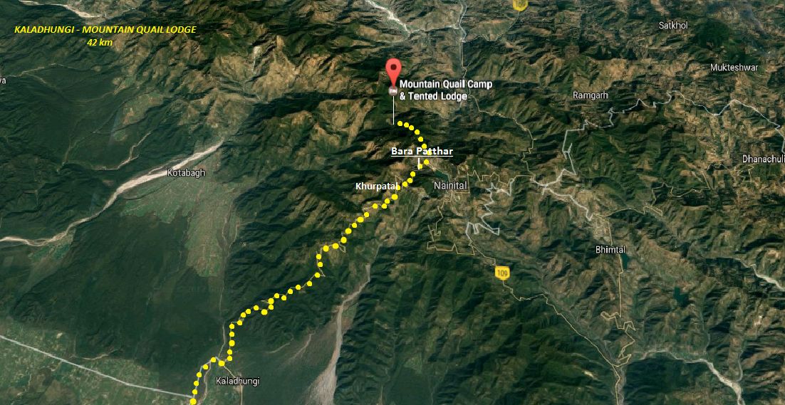 Being only 15 km from Nainital and yet far away from the madness, Mountain Quail Lodge is located in the heart of The Naina Devi Himalayan Bird Conservation Reserve in the Kumaon Himalaya, Uttarakhand. One of the last few remaining continuous stretches of moist Oak and Rhododendron forests in the entire Himalayan belt, this area is extremely rich in biodiversity. It is home to over 350 species of Birds and Wildlife such as Leopards, Himalayan Black Bear, Ghural (Mountain Goat), Barking Deer, Sambhar and Pine Martins.